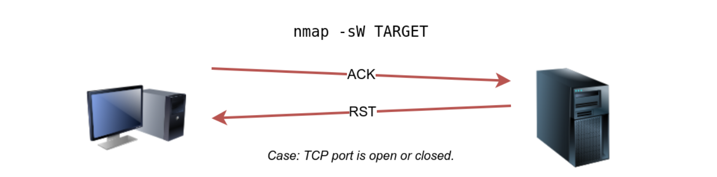 -sW . This type of scan is helpful if there is a firewall in front of the target. Consequently, based on which ACK packets resulted in responses, we can learn which ports were not blocked by the firewall. This type of scan is more suitable to discover firewall rule sets and configuration.